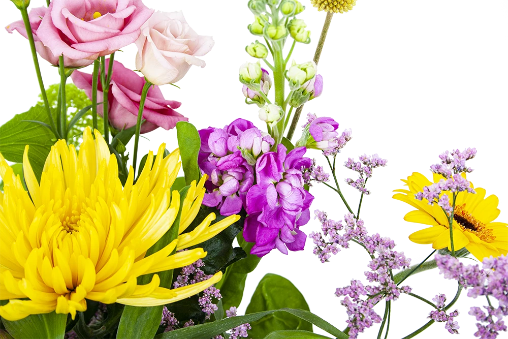 De combinatie van de kleurrijke gele en roze bloemen geven het veldboeket een zomerse en vrolijke uitstaling. Een boeket dat in elke ruimte gezelligheid creëert. Bovendien geschikt voor verschillende gelegenheden. Feliciteer, bedankt of verstuur zomaar dit prachtige handgebonden boeket en verras de ontvanger! * Exclusief accessoires en vaas
