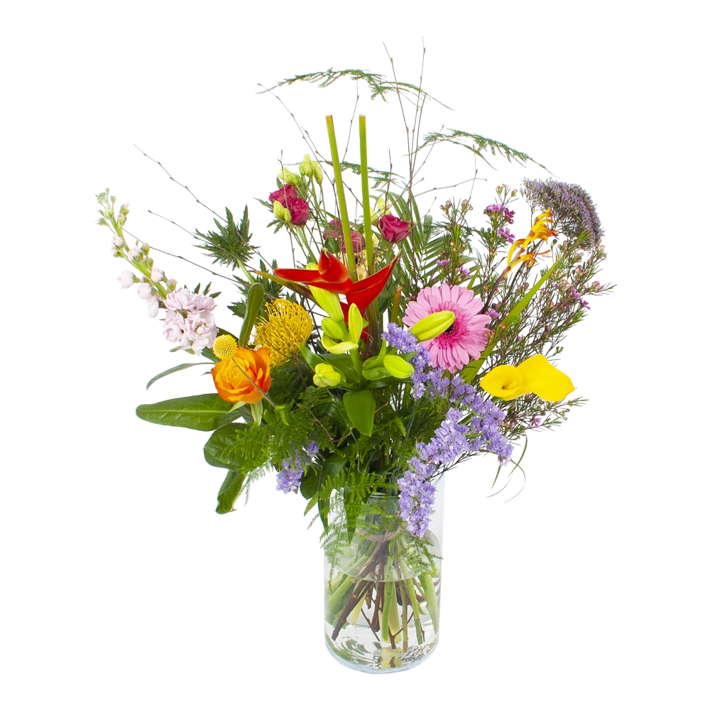 De combinatie van vrolijke en frisse bloemen geven het veldboeket een gezellige uitstraling. Met dit boeket haal je de lente in huis. Bovendien is dit boeket geschikt voor verschillende gelegenheden, zoals feliciteren en bedanken of verstuur zomaar dit prachtige handgebonden boeket en verras de ontvanger! * Exclusief accessoires en vaas