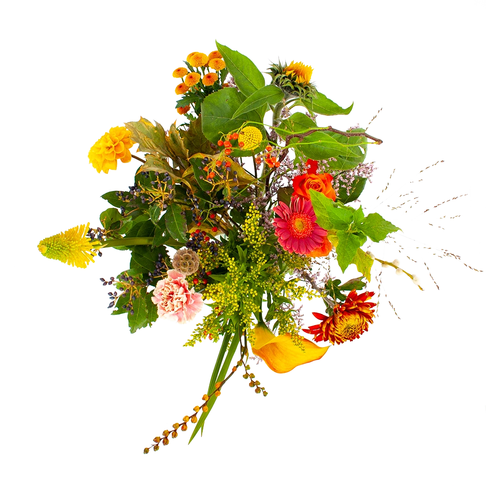 Met Boeket Vrolijk breng je een prachtig boeket in huis met de mooiste tinten voor het najaar! Verwen jezelf met verse bloemen of verras iemand anders! *Exclusief accessoires en vaas.