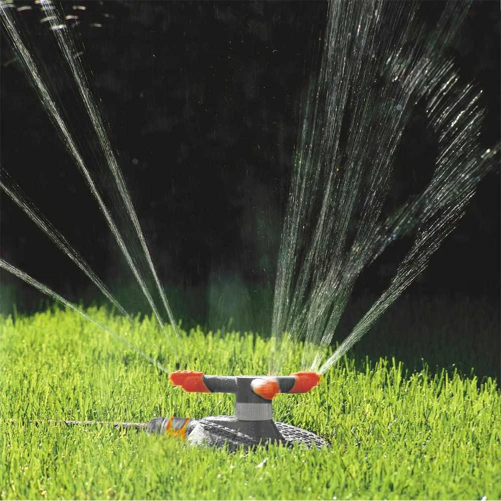 De GARDENA Classic cirkelsproeier Samba is een praktische sproeier voor kleine tot middelgrote oppervlakken. U kunt gebieden van maximaal 250 m² besproeien met een sproeidiameter van 3 m tot maximaal 18 m. De sproeier heeft draaiende, zeer precieze spuitmonden, die zorgen voor een gelijkmatige verdeling van het water, zonder plassen. De stevige basis garandeert een stabiele werking en mobiel gebruik. Met praktisch uitneembaar vuilfilter. Besproeien kan zo gemakkelijk zijn.