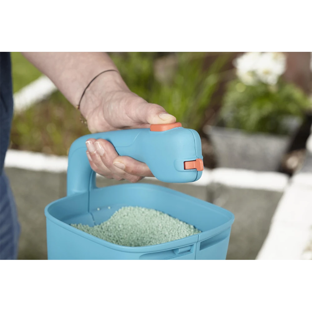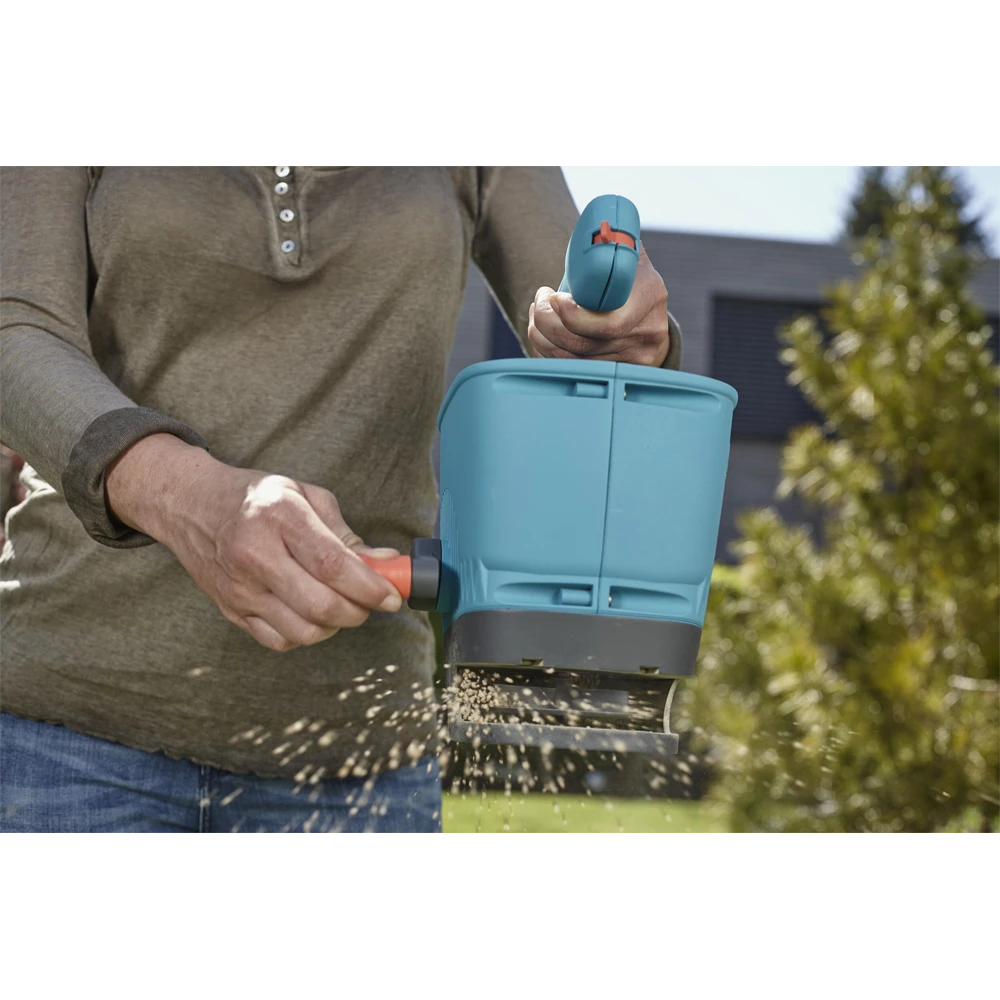 De GARDENA Handstrooier M is ideaal voor het verspreiden van meststoffen en strooizout op kleinere oppervlakken. De juiste dosering voor het strooigoed is direct in te stellen op het ergonomisch ontworpen handvat. De handstrooier wordt bediend met een handmatige slinger. De rotatiesnelheid bepaalt het strooibereik. De vrijlopende strooischijf biedt optimale functionaliteit en zorgt voor een gelijkmatige verdeling zonder verstoppen. Het spreid bereik is 1 tot 4 meter. De strooier is gemaakt van hoogwaardig kunststof en daardoor bijzonder stevig. De handstrooier is het hele jaar door te gebruiken voor strooigoed met een verschillende korrelgrootte, zoals meststoffen, zaden, granulaat, zand en strooizout